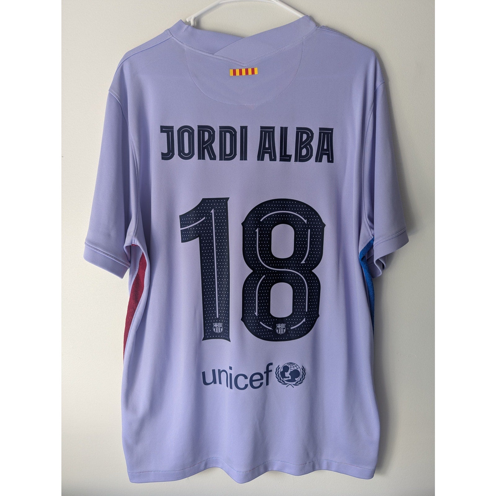 Celebrate one of Barça’s most loyal warriors with this FC Barcelona 2021-22 Away Jordi Alba Jersey 💜🔵🔴 A stunning mix of bold purple tones and Catalan pride, this Nike away kit represents the heart of a transitional era—when veterans like Alba carried the torch while the next generation began to rise. Featuring the Spotify sponsor, Alba’s classic #18 print, and premium Dri-FIT technology, this jersey blends modern design with legendary roots. A must-have for collectors who appreciate loyalty, legacy, and that relentless Barça spirit.