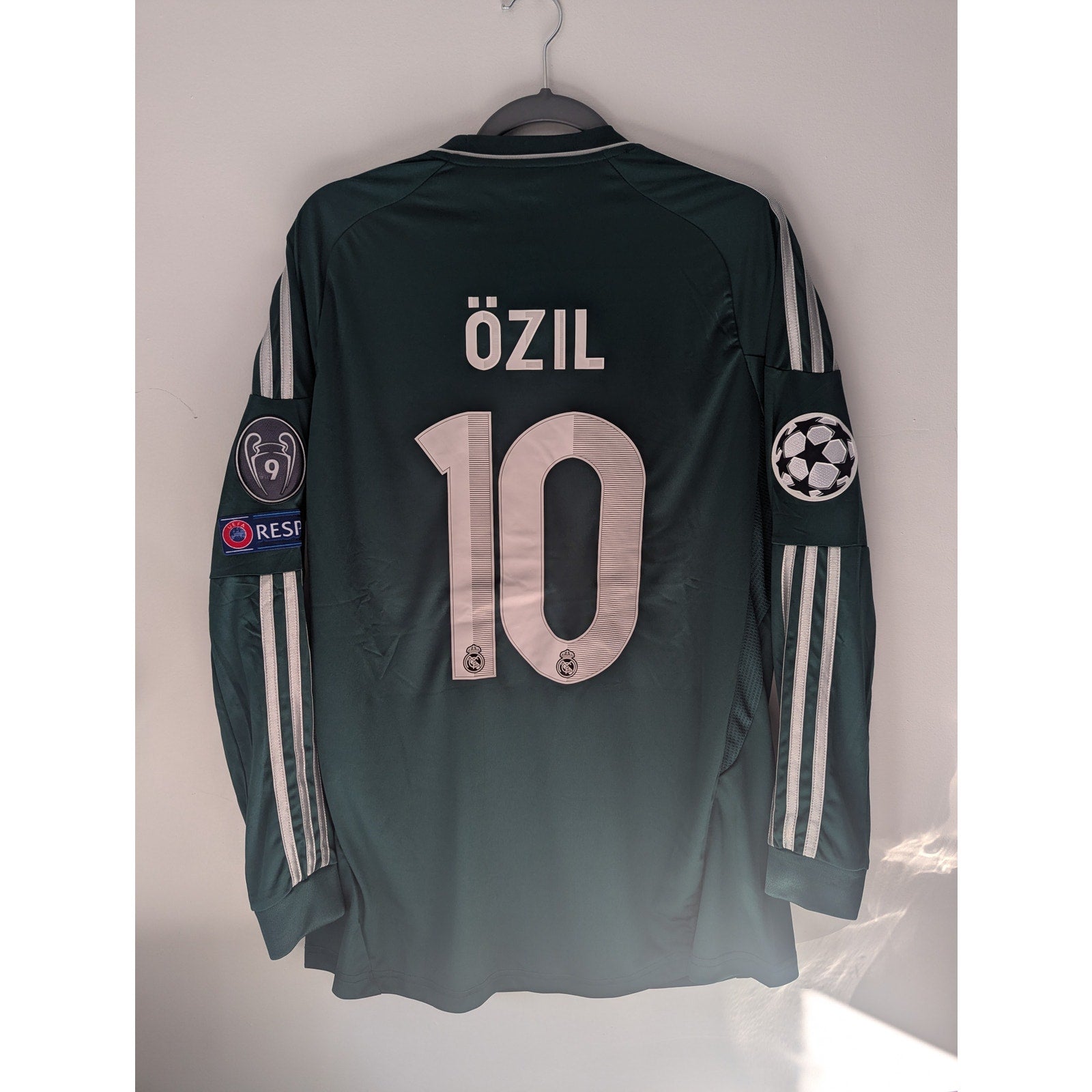 Step into the glory days of European nights with this Real Madrid 2012-13 Third Mesut Özil Long Sleeve Jersey 💚⚽️⭐ Crafted by Adidas, this deep green UCL edition kit became an instant classic — elegant, sleek, and unforgettable under the floodlights. Featuring Özil’s #10 print, the Bwin sponsor, and Champions League patches, this jersey captures the brilliance of one of football’s finest creators at his peak. A collector’s dream and a must-have for fans who remember when Özil’s vision defined Real Madrid’s attacking magic.