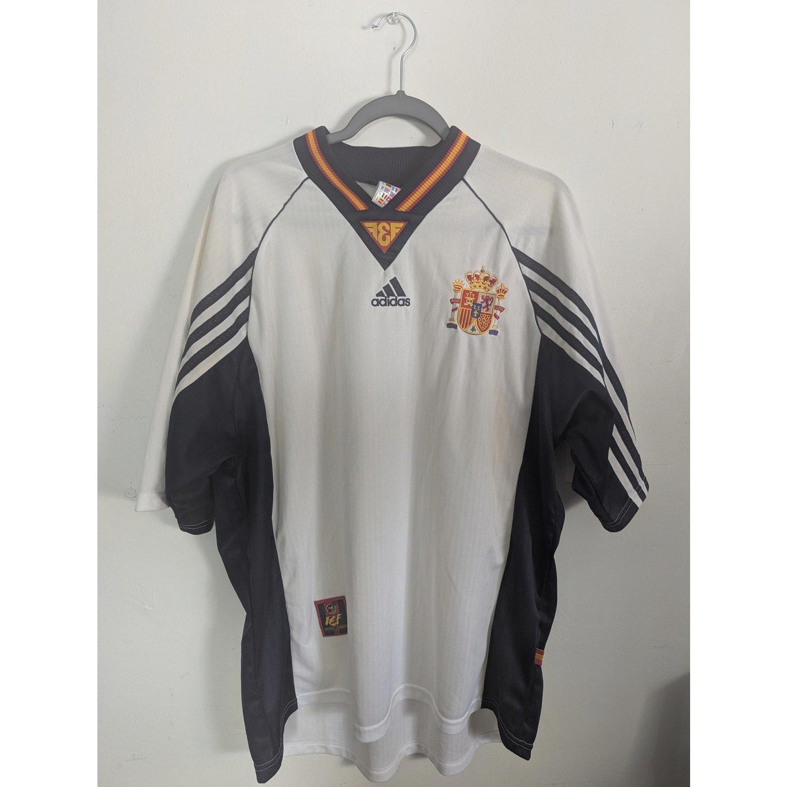 This is pure late-90s international football nostalgia. The Spain national football team 1998 Away Jersey is a true vintage adidas classic from the France ’98 era — bold design, sharp detailing, and that unmistakable pre-modern football aesthetic. Featuring the iconic España crest and classic adidas construction, this authentic vintage kit in a men’s XL delivers the relaxed 90s fit collectors love. Genuine late-90s Spain away shirts are increasingly hard to find, especially in larger sizes, and they carry serious throwback appeal for both collectors and streetwear heads. This isn’t just a jersey — it’s a time capsule from football before sponsorship overload and template kits took over.